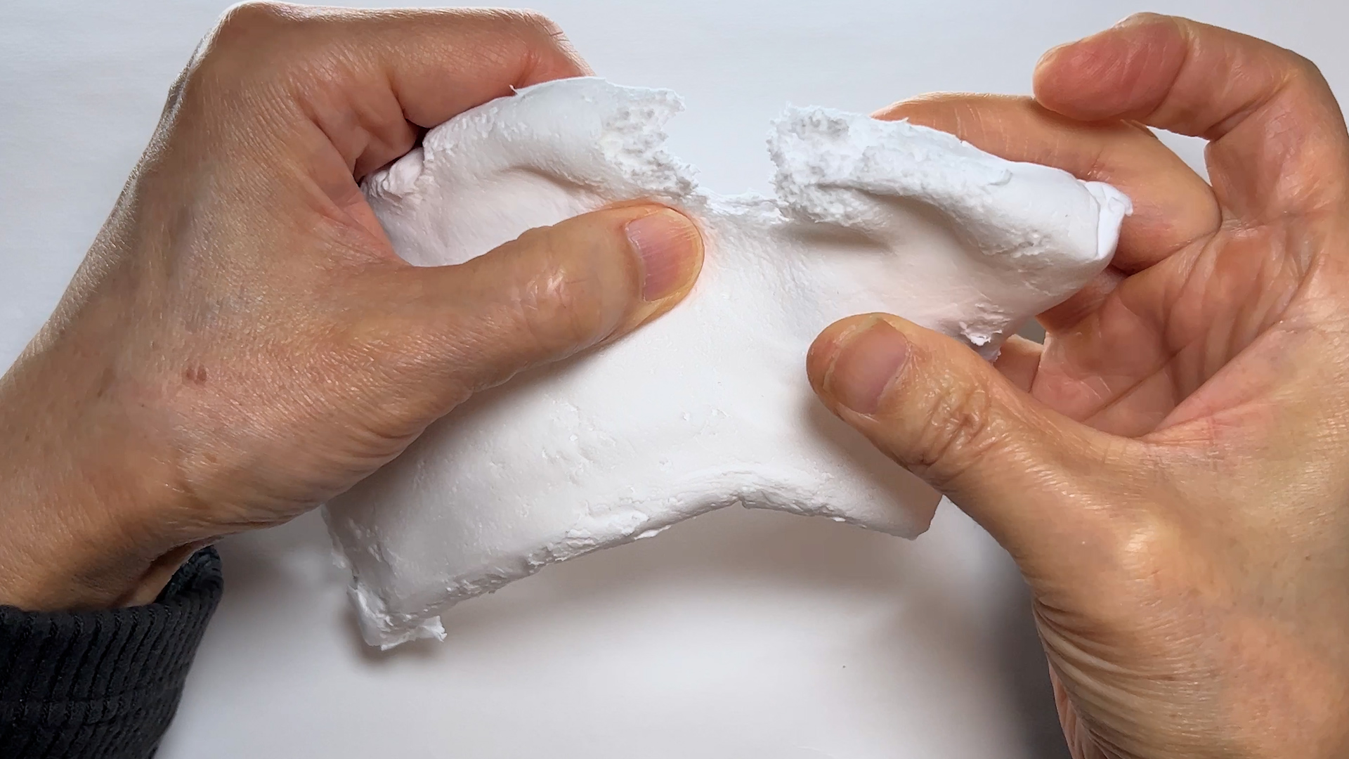 まず適当な量の粘土を取って、手の中で転がして丸めます。このように丸めた形からスタートするとひび割れが少なくきれいなものができます。