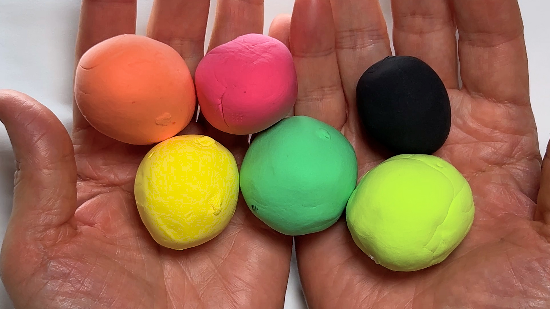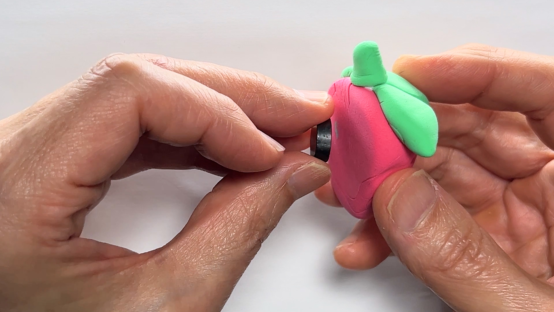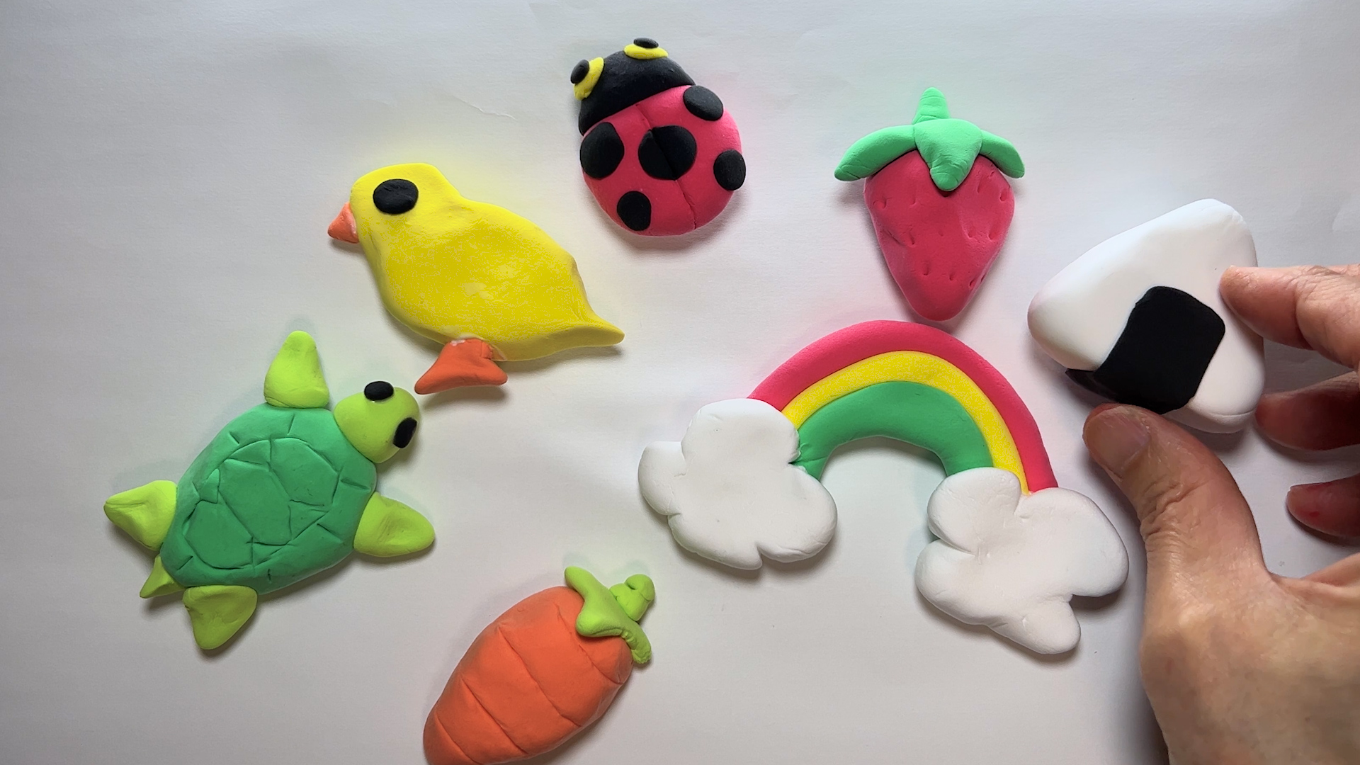 ・磁石で保持しやすいように、粘土は「軽量」のものが最適です。 小さな工作で、筆で後から着色するのが難しいため、形を作る前に絵の具を練り込んで「色粘土」を作って、それを材料に使うのがいいでしょう。