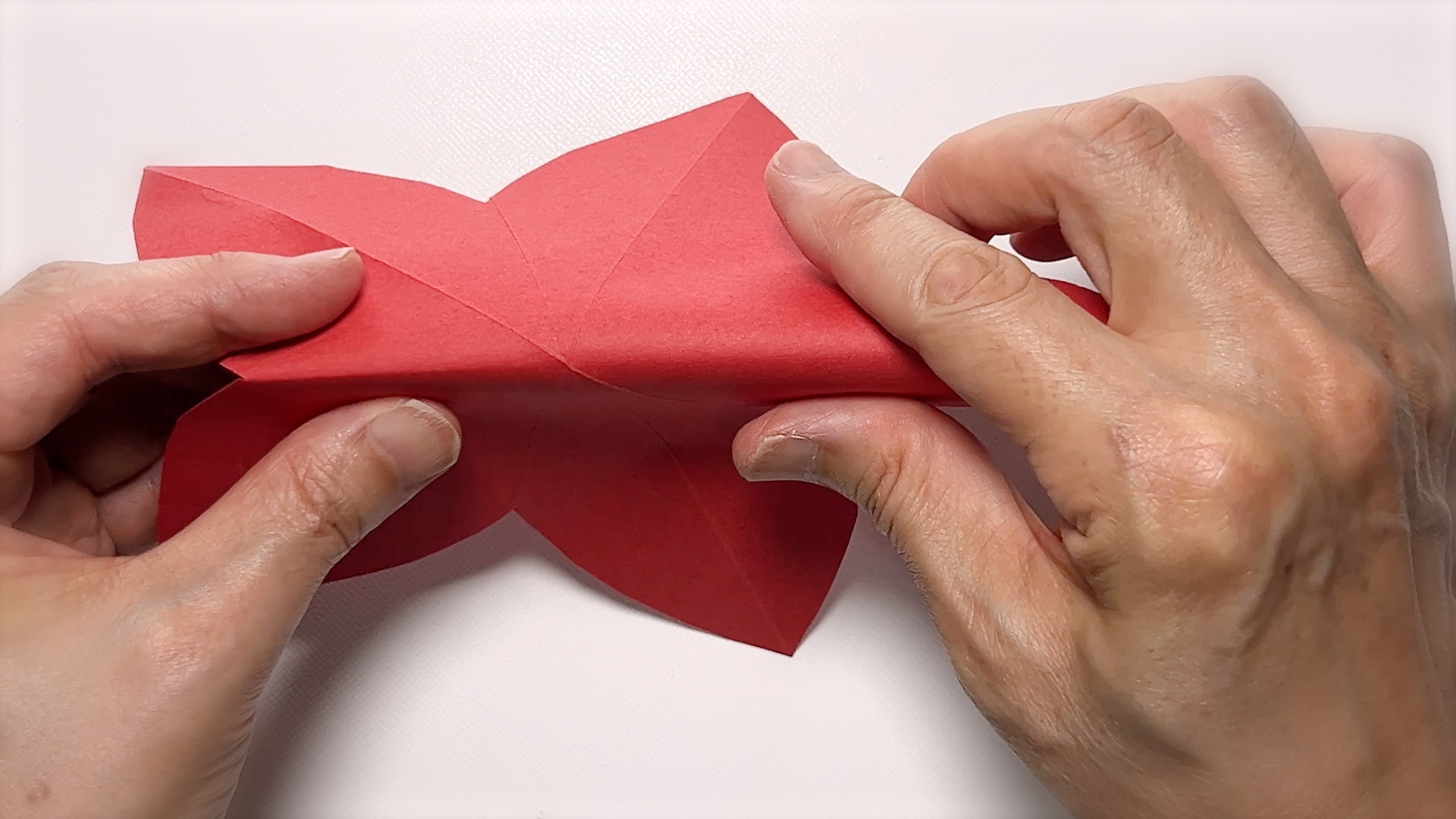 谷折り山折りを交互に繰り返して、葉に凹凸を作っていきます。